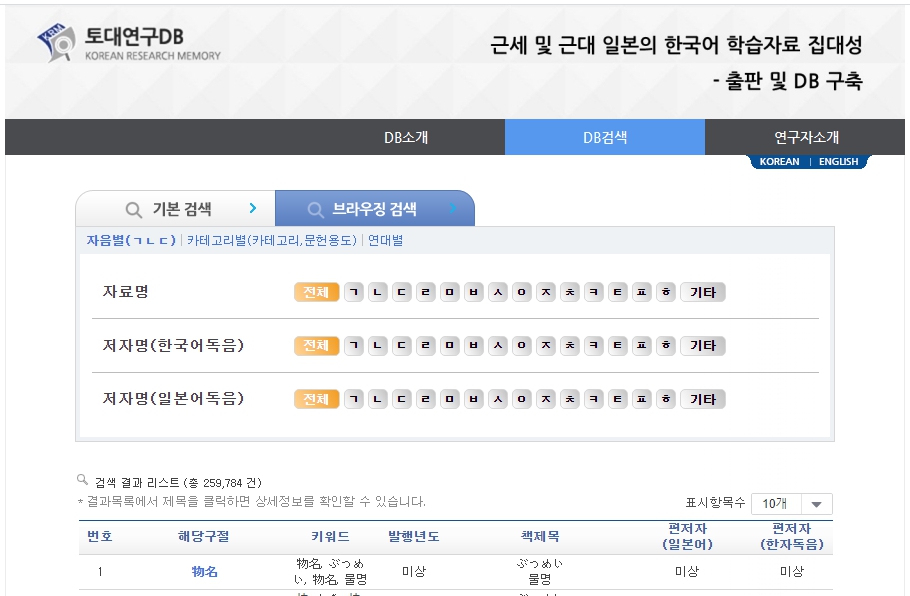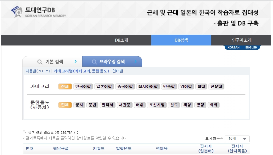 본 연구의 목적은 근세 및 근대 일본의 한국어 학습자료를 총체적으로 조사·수집·분석한 후, 체계적으로 정리하여 이들 자료에 대한 해제, 서문 및 목차의 번역, 본문의 DB화와 함께 영인자료집을 발간하고자 하는 것이다. 종래 이들 자료는 국어사와 일본어사 연구에 귀중한 가치를 지니고 있음에도 불구하고 종래의 한국(朝鮮) 측 문헌에 보이는 일본어 학습자료―대표적인 예로서 朝鮮板『伊路波』『捷解新語』『倭語類解』와 같은 사역원 왜학자료―에 비하여 그다지 주목을 받지 못한 채 연구의 사각지점에 놓여 있었다고 할 수 있다. 하지만 최근 국내외에서 이들 자료에 대한 재평가 작업이 진행됨에 따라 그 자료적인 가치가 학계에 보고되어 연구 활성화를 위한 다각적인 시도가 필요한 시점이다. 무엇보다도 18세기 이후 230년간에 걸쳐 일본인이 남긴 한국어 학습자료는 우리의 입장에서 볼 때 그 역사적·사회적 가치 또한 간과 할 수 없을 것이다. 이와 같은 이유에서 이들 자료에 대한 체계적인 정리와 영구보존을 위한 DB구축의 필요성은 더 이상 늦출 수 없는 절실한 과제라고 하지 않을 수 없다. 특히 일본 각지에 산재되어 필사본의 형태로 전해오고 있는 에도(江戶)시대의 한국어 학습자료는 충손(蟲損) 등으로 인한 훼손의 우려가 나타나고 있어 이들 자료에 대한 DB구축과 영인 출판이 시급한 상황이다.