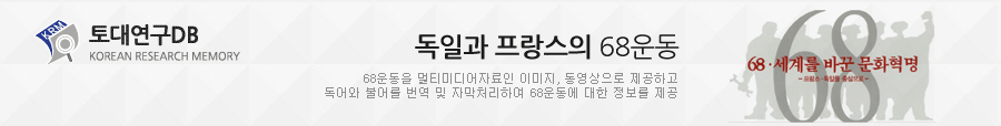 68년 프랑스의 학생시위로부터 촉발되어 짧은 시기에 사회전반에 엄청난 파장을 몰고 온 이 운동은 프랑스에서 같은 해 5월 30일 국회가 해산되고 독일에서는 역시 같은 날 긴급조치법이 발효되면서 진정국면에 접어들었다. 이 운동에 참여했던 사람들은 스스로를 당장 정치세력화하는 데에는 실패하였지만 향후 양국의 정치, 사회, 문화, 예술의 각 방면에 심대한 영향을 끼쳤고, 당시에 제기되었던 대안적 제안들은 점진적으로 제도화되는 과정을 거치면서 현재에 이르기까지 사회 시스템 변화의 초석으로 작용했다. 당시의 주역이었던 68세대에 속하는 인사들이 현재 두 나라의 정치, 경제, 사회, 문화 그리고 예술의 여러 분야에서 지도적 위치를 점하고 있다는 사실에 주목하면, 68운동은 유럽의 현재를 이해하기 위한 핵심적인 코드로 볼 수 있다. 총체적인 문화읽기의 차원에서 68운동을 이해하고, 이를 통해 하나의 통합적인 패러다임을 밝히려는 시도이다. 우리의 작업은 68년 당시의 시위양상을 정확히 분석하고 그것의 역사적 맥락과 정치, 사회, 경제적 영역에서 이루어진 변화의 의미와 성과를 실증적으로 분석하는 작업과 함께 이 운동이 유럽인의 사유방식과 일상생활 및 문화예술의 광범위한 영역에 미친 영향을 파악하는 작업으로 이루어졌다. 한국연구재단(구 학술진흥재단)의 지원을 받아 2002년 ~ 2004년까지 2년에 걸쳐 68운동이 불러일으킨 개별 현상을 치밀하게 분석하면서도 거기에 그치지 않고 역사적 사실과 그것이 지닌 심층적·문화적 함의를 드러내고자 노력하였다. 본 연구는 한국연구재단의 지원을 받아 2012년 3월 ~ 2012년 8월에 결쳐 6개월간 진행 되었고, 이미 연구가 완료된 ‘68운동과 유럽문화지형도의 변화’의 결과물을 DB로 구축하였다. 68운동의 시위현장과, 역사적 배경, 사건의 전개와 결실 등과 관련된 DB 구축 연구과제는 사장될 수도 있었을 귀중한 멀티미디어 자료들을 웹을 통해 제공함으로써 68운동을 생생하게 접할 수 있도록 하는데 중점을 두고 있다.