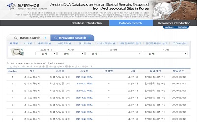 Supported by the National Research Foundation of Korea, this database is based on 3 years of research from 2012 to 2015. It is constructed as a researcher-centered database that delineates the detailed archeological context of each skeleton, along with systematic analyses of biological and morphological characteristics, pathological characteristics, stable isotopic information, and genetic information. For general viewers with interest it can provide an overview on the skeletons excavated from Korea, and for academic researchers seeking to study past conditions it can serve as a tool to search and categorize necessary data.