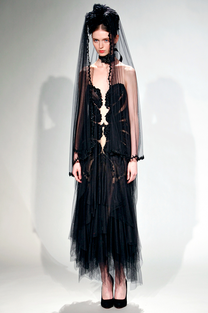 소설의 원형콘텐츠가 의상 디자인 브랜드의 컬렉션으로 변용되며 하비샴은 일련의 의상으로 구현된다. 원형콘텐츠에서 저택에 은둔하던 하비샴은 섬세하고 세련된 아름다움을 보여준다. 마르케사는 2004년 영국 여성 디자이너 듀오가 설립한 패션브랜드로, 챕먼의 드레이핑(draping) 디자인과 크레이그의 직물 디자인이 만나 레드카펫 행사에서도 인기 있는 고급스러운 여성복을 선보여 왔다. 의상들은 실크, 벨벳, 튤(실크, 나일론 등을 이용해 망사처럼 짠 천), 깃털 등을 소재로 하며, 흰색, 검정, 빨강, 연보라 및 아이보리 색상으로 강렬하면서도 연약한 하비샴의 인상을 표현한다. 특히 마치 신부복과 과부의 장례복을 나란히 보는듯한 검정색과 흰색의 웨딩드레스는 세상과 등을 지고 살던 하비샴의 어두운 내면을 상기시킨다. 이 컬렉션은 보통의 마르케사의 컬렉션에 비해 흐트러진 느낌이 강하다. 하비샴의 화려하며 낡고 기이한 느낌을 나타내기 위하여 디자이너들은 불균형한 밑단과 조각내듯 훼손한 실크 등을 통해 거친 느낌을 더하며 드레스를 장식한 보석의 반짝임을 줄이고자 보석 위에 파우더 칠을 하여 꾸민다. 컬렉션이 공개되었을 당시 모델들은 의상을 입고 조각상처럼 선 채로 패션쇼가 진행되었으며 이는 세상과 단절된 채 시체처럼 살아가는 하비샴의 모습을 반영한다. \r\n관련자료: http://www.vogue.co.uk/fashion/autumn-winter-2011/ready-to-wear/marchesa