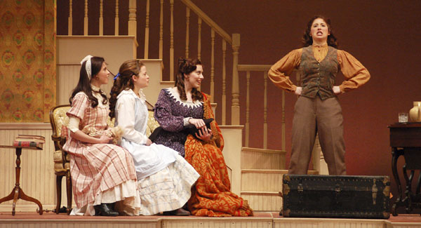 원형콘텐츠의 조세핀 마치는 뮤지컬 <작은 아씨들 Little Women>에서 활달하고 재능 있는 여성인물인 조로 형상화된다. 조는 뮤지컬에서 원형과 동일하게 작가적 재능이 많고, 말괄량이이자 정열적인 모습으로 등장한다. 뮤지컬의 프롤로그에서 조는 이미 성장한 모습으로 뉴욕에 살면서 출판사로부터 스물일곱번이나 거절의 편지를 받고 좌절한다. 그녀는 같은 하숙집에 있는 독일인 베어교수에게 조언을 구한다. 그러나 그의 비판에 불같이 화를 내며, 오히려 그와 싸움을 한다. 조는 작가적 열정과 재능이 있지만 아직 그것을 자신의 이야기로 풀어내는 법을 모르고 있다. 이를 베어교수가 지적한 것이다. 1막은 조의 유년기로, 그녀가 자매들과 옆집 친구 로리와 함께 보낸 시절이 펼쳐진다. 조는 마치숙모와 함께 유럽에 가는 것이 꿈이었지만, 세련되고 정숙한 숙녀가 되어야 한다는 숙모의 전제조건에 부합하지 못한다. 왜냐하면 타지에서 부상당한 아버지를 찾아가려는 어머니를 돕고자 자신의 길고 아름다운 머리카락을 잘라서 팔았기 때문이다. 유럽으로 갈 기회는 동생인 에이미에게 빼앗긴다. 조는 로리의 청혼을 거절하고 스스로의 힘으로 꿈을 이루고자 뉴욕으로 간다. 2막에서 조는 뉴욕에서 생활을 하며 베어교수의 조언에 따라 진솔한 글을 쓰게 되고, 베어교수에게 사랑의 감정도 느낀다. 조는 동생 베스가 위독하다는 전보를 받고 고향으로 돌아가, 베스의 임종을 지킨다. 베스의 죽음이후 예전에 글을 쓰던 다락방에서 자기와 자매들의 이야기를 써내려간다. 조는 이 작품을 베어교수에게 보내고 출판을 부탁한다. 베어교수는 직접 조를 찾아와 작품의 출판소식과 함께 청혼한다. 조는 그의 청혼을 받아들이고 마치숙모가 남긴 대저택으로 학교를 운영할 미래에 대한 비전을 세운다.