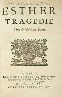 장 라신의 <에스더>는 3막으로 된 교육용 성극이다. 이 성극에서 에스더는 원형과 유사하게 신앙심 깊은 구원자의 모습으로 형상화된다. 희곡 <에스더>는 신과 선택받은 선민 간의 약속에 대한 믿음과 그 실현을 찬양하는 찬가이다. 이 작품에서 에스더는 주체적 행위를 하는 인물이 아니다. 라신이 말한 것처럼 오로지 “하나님께서 손수 예비하셨던 장면들만으로 극 전체를 채운 듯” 등장인물들은 신의 섭리에 따라 행동한다고 말한다. 이 연극의 목적은 단순히 카타르시스를 위한 것이 아니라, 아동이나 수도회를 위한 교육적 목적을 가지고 있다. 그렇기 때문에 이 작품에서는 분명한 선악의 구도 속에서 인물들이 대립한다. 에스더는 완전한 선인으로서 민족을 구원하기 위해 선택받은 구원자의 역할을 한다. <에스더>에는 합창대가 등장하는데, 이는 라신의 다른 세속극에서는 볼 수 없는 새로운 인물이다. 합창대는 ‘참된 신을 찬양하기 위해’ 고대의 합창대 형식에서 차용한 것이다. 합창대는 한편으로는 하나의 등장인물로서 작품의 줄거리에 긴밀히 연결되어 있으면서도, 다른 한편으로는 초월적 입장에서 작품 내의 모든 인물들과 사건에 대해 비판하고 중재하는 기능을 하고 있다.