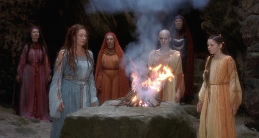 영화 <아발론의 여인들>에서 비비안은 원형콘텐츠의 유혹적인 여성의 모습은 삭제되고 성스러운 여사제로서의 이미지가 강조된다. 그녀는 늘 근엄한 표정과 길게 땋은 머리카락, 커다란 장신구과 이교도적인 의상으로 고대 종교인 아발론 여신의 대변자의 모습을 형상화한다. 비비안이 아발론으로 들어가는 입구에서 안개를 걷어낸다든지, 마른 나무에 눈빛만으로 불을 피우고, 또 비를 내리는 장면들은 그의 성스런 마법의 능력을 강조하는 기능을 한다. 그러나 그녀의 믿음직스런 동료였던 멀린의 죽음 장면에서 비비안은 인간적인 슬픔과 고통을 드러낸다. 이는 비비안이 여신의 사제로서 여성성을 거세당하고, 인간성을 희생당했음을 나타낸다. 비비안이 아서의 아들인 모드레드의 칼에 찔려 죽는 장면에 나타나는 개기일식의 클로즈업 표현은 그녀의 죽음을 신비화하는 것으로, 비비안이라는 인물 자체가 지닌 성스러움, 지배자의 성격을 극대화한다.