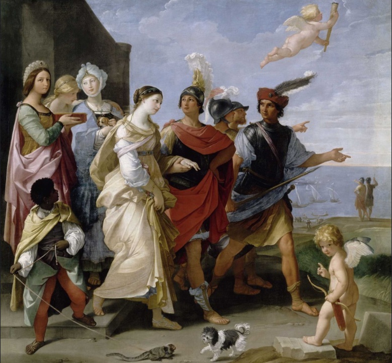 헬레네는 <헬레네의 납치>에서 유혹당하는 여성 여성의 이미지가 강조되어 그려진다. 트로이 전쟁은 트로이 왕자 파리스가 스파르타의 왕비 헬레네를 납치해 트로이로 데려가면서 시작된다. 헬레네가 파리스에 의해 납치당했다는 것이 일반적인 이야기이지만, 헬레네가 젊고 잘생긴 트로이의 왕자 파리스의 유혹에 기꺼이 넘어가 남편을 배신했다는 이야기도 전해진다. 헬레네가 납치당한 것이 아니라 남편 메넬라오스의 보물까지 챙겨 적극적으로 파리스를 따라 나섰다는 것이다. 귀도 레니의 작품 <헬레네의 납치>는 바로 이 두 번째 이야기에 초점을 맞추고 있다. 작품 제목은 <헬레네의 납치>이지만 헬레네의 모습은 전혀 납치를 당하는 여인의 모습이 아니다. 남편을 버리고 정부와 달아나는 헬레네의 모습에는 추호의 망설임도 없고 오히려 당당함이 느껴진다. 젊고 잘 생긴 왕자 파리스와 새로운 곳에서 새로운 생활을 시작하는 것에 대한 기대감에 부풀은 채 어서 빨리 트로이로 가려는 듯, 가벼운 발걸음으로 배를 향해 가는 모습이다.