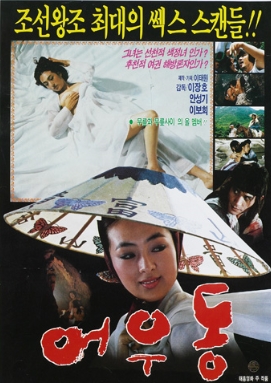 영화는 조선전기의 시인, 기생, 작가인 어우동의 일대기를 그린다. <어우동>은 19금 영화로 음란하고 퇴폐적이라 하여 한때 개봉중지, 상영중지가 되기도 하였으나 1988년 이후 해제되어 상영된 바 있다. 영화는 방기환이 쓴 동명의 소설(1979)을 원작으로 한다. 영화에서 어우동은 희생을 강요하는 조선 전기 사회와 유교사상에 도전하는 여성으로 설정한다. 영화는 원형콘텐츠에 없는 인물인 갈매와 향지를 등장시킴으로써 어우동의 복수·도전하는 이미지를 강조한다. 육체를 이용해 가부장적 사회에 반항하기 시작한 어우동의 명성은 높아가고 시집과 친정은 가문의 명예를 지키기 위해 자객 갈매를 보낸다. 조정에선 조정대로 정치적 목적으로 어우동을 잡아 교살하지만 실은 어우동 대신 향지가 희생되고 어우동과 갈매는 도주하는 반전이 연출된다. 살인 청부업자인 갈매와 기생 향지는 사회적 약자이지만 어우동의 조력자로 등장한다. 이 영화를 위해 발탁된 배우 이보희의 요염한 표정과 자태는 이후 섹시한 배우의 대명사가 될 정도로 파격적이었다. <어우동>은 사극 에로물이지만 탄탄한 스토리 전개와 아름다운 영상미를 통해 상당한 완성도를 보여준다. 개봉한 그 해 한국영화 최고 히트작으로 평가되었으며 어우동의 에로틱한 이미지는 거의 이 영화로 형성되었다고 할 수 있다.