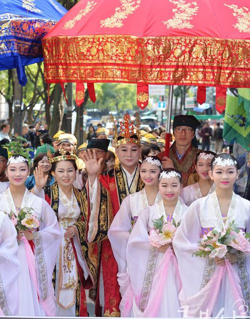 ![]() 신행길을 재연하는 허황옥과 김수로