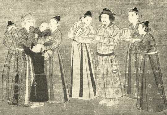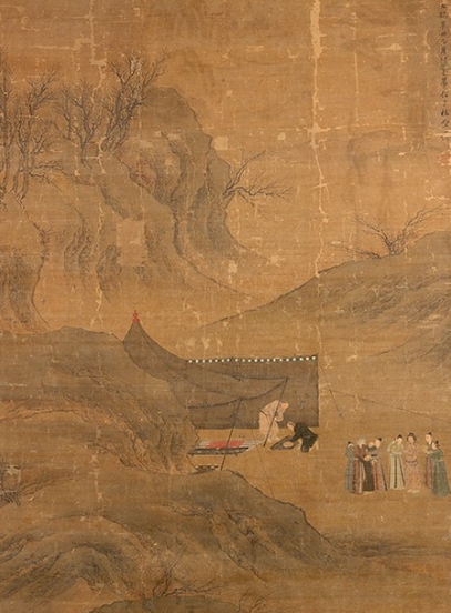 <문희별자도(文姬別子圖)>는 흉노족에게 포로로 잡혀갔던 채문희가 고향으로 돌아가면서 아들과 헤어지는 장면을 그린 것이다. 129x91cm 크기로 비단에 채색된 된 그림은 원나라 때 화가인 조맹부의 작품이다. 복고적 화풍을 추구했던 조맹부의 작품이 그렇듯이 <문희별자도>는 기교보다 현실감 있는 자연 묘사와 있는 그대로 상황을 그림에 반영한다. 그림은 세 부분으로 요약되는데, 중국의 북쪽에 있는 흉노족의 험준한 산세를 배경으로, 중심부에 조조가 보낸 중국 사신이 돌아갈 채비를 하고 있고, 우측 하단에 채문희가 아들과 이별하는 장면이 묘사되어 있다. 이별하는 장면은 세밀한 필치로 인물들의 표정을 실감나게 표현하고 있다. 오랜 고생 끝에 마침내 고향에 돌아가게 되었지만 기쁨보다 자식과 이별에 가슴 아파하는 모습의 채문희와 헤어지지 않으려는 두 아들, 떠나는 아내에게 이별주를 건네지만 슬픈 표정이 역력한 좌현왕의 표정이 생생하다.
