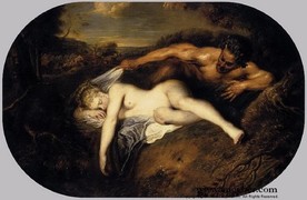 프랑스 로코코 시대 화가 와토의 그림 <주피터와 안티오페>의 크기는 73x107cm로 루브르 박물관에 소장되어 있다. 그의 그림은 프랑스 왕조문화의 밝고 우아하며 관능적인 매력을 풍기는 로코코 회화 특유의 정서를 반영한다. 베네치아 파 화가들은 목신과 요정의 유혹이야기를 즐겨 다룬다. 와토 또한 베네치아 파 화가들의 영향을 받아 신화 속 주인공 <주피터와 안티오페>를 완성한다. 그림은 들에서 혼자 잠든 안티오페를 주피터가 겁탈하려는 장면을 포착하면서 주피터의 겁탈 행위에 중점을 둔다. 와토는 안티오페의 나신과 주피터의 나신을 크게 클로즈 업 시키고 원경을 먼 조망으로 처리한다. 안티오페는 안정적인 자세로 풀밭에 누워 나체로 잠들어 있고 주피터는 마지막으로 그녀의 얼굴을 확인하기 위해 얼굴을 덮은 천을 들춘다. 와토의 그림에서 겁탈을 당하는 자와 겁탈하는 자의 인물이 균형감 있게 구성된다. 두 등장인물의 머리는 화면의 양 끝을 향하고 중심 부분에 두 인물의 엉덩이 부분이 서로 겹쳐지면서 안정감을 보여준다.
