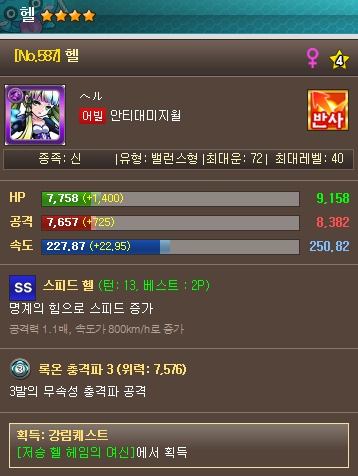<몬스터 스트라이크>는 자신이 좋아하는 몬스터를 육성하여 적 몬스터들이 대거 포진해 있는 소굴인 던전(Dungeon)을 공략하는 액션게임이다. 이 게임에는 게이머가 선택할 수 있는 다양한 족속에 속하는 600여종의 몬스터 캐릭터들이 등장하는데, 헬은 이 가운데 4성급에 해당하는 비교적 강한 몬스터로 등장한다. 원형콘텐츠의 헬이 명부의 여신인 것과 관련하여 게임에서 헬은 신 종족에 속하는 지옥의 여신이다. 여성 몬스터 헬의 특성은 스피드다. 다른 몬스터들에 비해 힘과 공격력은 떨어지지만, 명계의 힘으로 스피드가 뛰어난 것이 강점이다. 때문에 헬은 작지만 빠르게 적을 공략할 수 있도록 형상화되어있다.