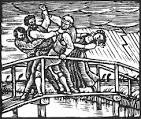 ![]() 에른스트 뷔르텐베르거의 판화 <좁은 다리 위에서 싸우는 만츠와 마르티>