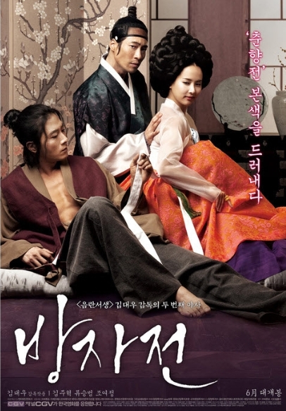 영화 <방자전>은 원형콘텐츠의 정형화된 캐릭터를 전복시키는 전략으로 재창작되어 2010년 6월에 개봉한 작품이다. 이 작품은 원형콘텐츠의 인물들을 현대적 감각으로 재구성한 것이며 연애와 결혼을 따로 생각하는 현 사회풍토의 문제점을 지적하고 있다. 영화 <방자전>은 방자와 이야기꾼이 영화의 서사를 진행하는 액자형 서사구조이다. 원형콘텐츠의 주체였던 춘향과 몽룡 대신 방자가 주체이며, 원작에는 없는 방자의 연애 스승으로 등장하는 마노인과 변학도는 어리바리하면서도 호색한으로 등장한다. 특히 마노인은 방자의 위험한 사랑의 시발점이 된다. 그는 춘향을 차지하고 싶다는 방자에게 우선 여자의 마음을 알아야 한다는 등 적극적으로 도와준다. 영화 <방자전>은 고전텍스트의 ‘낯설게 하기’를 활용하여 새로운 콘텐츠로 개작하는 방식을 선택한다. 이 영화는 <춘향전>의 주인공을 변형하거나 적대적 관계의 인물 설정, 특히 마노인이라는 희극적 인물을 등장시켜 이미 잘 알려진 <춘향전>의 식상함을 벗어난다. 영화 <방자전>은 배우 조여정이 연기한다. 춘향은 정절을 지키는 정형화 된 열녀의 이미지를 깨고 사랑과 신분상승을 동시에 꾀하고자하는 여성으로 그려진다. 춘향은 방자와의 사랑을 성취하려면 몽룡이 적대자가 되고, 반대로 신분 상승을 성취하려면 방자가 적대자가 되는 삼각관계의 틀을 형성한다. 춘향이 몽룡과 혼인하여 몽룡의 집으로 가는데, 방자를 데리고 가는 장면은 춘향의 이중적인 성격이 잘 표현된다. \r\n\r\n관련자료: https://youtu.be/G7-9IEa7Eo8
