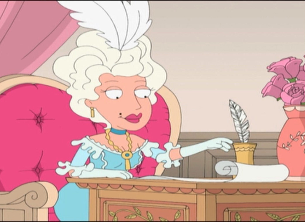애니메이션의 마리 앙투와네트는 원형콘텐츠와 유사하게 허영심이 많은 순진한 인물이다. 애니메이션에서 그녀의 대한 삶의 이야기나 인간관계 등은 생략되며 그녀는 웃긴 문장을 생각해내는 데 열중한다. 그녀는 프랑스 국민에게 할 말을 고르고 있다. 프랑스의 여왕 마리 앙투와네트는 홀로 앉아 낙서 장에 글을 휘갈긴다. 화장과 의상으로 한껏 꾸민 그녀는 종이에 깃털 펜으로 고심하여 왼손으로 글을 쓴다. 결국 그녀가 만족스럽게 고른 문장은 “(빵이 없다면) 케이크를 먹으라고 해라”이다. 이 말은 원형콘텐츠에서 마리 앙투와네트가 빈곤에 시달리는 국민들에게 했다는 말로 전해지지만 사실여부는 확인되지 않았다. 이는 사치와 허영에 빠져 국민의 삶과 민생을 등한시 한 악한 왕비의 이미지를 차용한 변용이다.