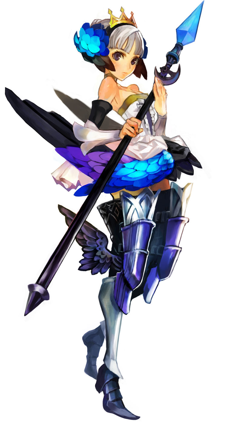 게임의 발키리는 전사형 여성이며 ‘백조 처녀’라는 원형콘텐츠의 별명을 차용한 모습으로 나타난다. 게임에서 그녀는 전투 시 사이퍼 창을 이용하고, 날개로 날아다니거나 자신의 그림자를 복제해 공격에 이용하기도 한다. 여전사 그웬돌린은 원형과 흡사하나 백조를 시각적 모티프로 형상화한 옷을 입는다. 흡사 발레 <백조의 호수>를 연상시킬 법한 하얀색 투투 드레스와도 비슷하지만 하의는 갑옷과 날개가 장착된 부츠로 전사의 이미지를 더한다. 작화 스타일은 일본의 게임회사가 제작한 만큼 일본만화의 특징이라 할 미소녀에 충실한 외양이며, 이로써 10대 소녀 같은 귀여운 얼굴이다. 그러나 그녀는 전장에서 두려워하는 강한 전사라는 반전 매력도 지닌다. <오딘 스피어>는 일본의 2D 판타지 액션 롤플레잉 비디오게임으로, 플레이스테이션 2(Play Station2)에서 재생된다. \r\n관련자료: http://www.youtube.com/watch?v=F98E8MegMfc