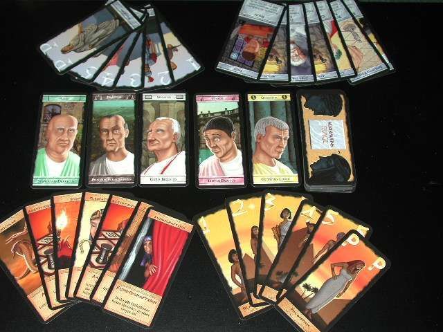 이 게임에는 여러 종류의 카드가 나온다. 로마와 이집트 각각 37장의 액션카드, 13장의 영향력 카드, 그리고 6장의 영향력 보너스 카드, 21장의 귀족카드, 8장의 신임투표 카드로 구성되어 있다. 게임은 클레오파트라가 먼저 시작하고 플레이어는 액션을 취하거나 취하지 않을 수 있다. 승부를 건 게임이라는 매체변용으로 기존의 요부라든가 팜 파탈이라는 클레오파트라의 이미지는 크게 변용되고 있다. 특히 시저와 단 둘이 하는 게임이면서 자신의 정치적 영향력을 입증해야 하는 게임의 스토리는 남성의 권력이나 여성적 미모에 의존하지 않고 자신의 지략과 이성을 철저히 발휘해야 하는 지도자로서의 클레오파트라의 모습을 강조하고 있다.
