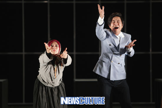 연극은 레오 톨스토이의 원작 <부활>을 기본으로 한 프레스타코프 형제의 대본 <부활 슈퍼>(2004년 유리 부두소프 연출)를 각색한 작품이다. 연극 <부활>은 경기도립극단과 예술의 전당의 합작 공연으로, 연출가 고선웅은 원작이 가진 본연의 메시지를 충실하게 무대화한다. 고선웅은 톨스토이의 <부활>을 불합리한 사회구조로 인해 사건 사고가 끊어지지 않았던 2013년 대한민국의 연극 무대에 올린다. 고선웅은 방대한 원작의 일부 사건만을 선택하여 속죄와 구원의 메시지를 밀도 있게 전달한다. 네흘류도프는 과거 자신이 유린하고 버린 카츄샤의 타락이 자신으로부터 비롯되었다는 생각에 양심의 가책을 느끼고 속죄의 길을 걷는다. 카츄샤는 그의 참회와 속죄를 통해 영혼의 부활을 얻는 여성으로 그려진다. 연극은 다양한 무대 상징을 사용하여 연극적 재미를 구현한다. 카츄샤와 네흘류도프는 술래잡기를 하며 뒤편의 슬로프 위를 올랐다가 다시 객석으로 뛰어 내려오는 행동을 반복하며 무대를 자유롭게 누빈다. 캉캉 춤과 음악, 마임이 더해지면서 명랑한 분위기를 조성하기도 하고 우아한 선율에 맞춰 우울한 움직임을 선보이기도 한다. 의상은 색상 대비를 통해 하층민과 귀족들의 신분을 구분한다. 특히 강렬한 원색에 반짝이는 비즈로 장식한 귀족들의 과도한 의상을 통해 그들의 위선에 찬 삶이 풍자된다. 영혼의 부활을 외치는 주인공들은 슬로프의 끝에 닿기 위해 뛰어 다니며 계속 굴러 떨어지거나 미끄러지기를 반복한다. 두 사람이 서있는 슬로프의 하강과 상승이 서로 엇갈리면서 두 사람 사이에 놓인 사회적 간극이 효과적으로 시각화된다. 연출 작업에는 폴란드 출신의 디자이너 알렉산드라 바실리코프스카, 작곡가 미하엘 슈타우다허, 안무가 박호빈이 함께 참여했다. 네홀류도프 공작 역은 뮤지컬 배우 서범석이 맡았으며 자신의 순수성을 회복하고 이타적인 인물로 변화되는 카츄샤 마슬로바 역으로 예지원이 출연했다. \r\n\r\n관련자료: https://www.youtube.com/watch?feature=player_embedded&v=Lk1TtlzQ3O4
