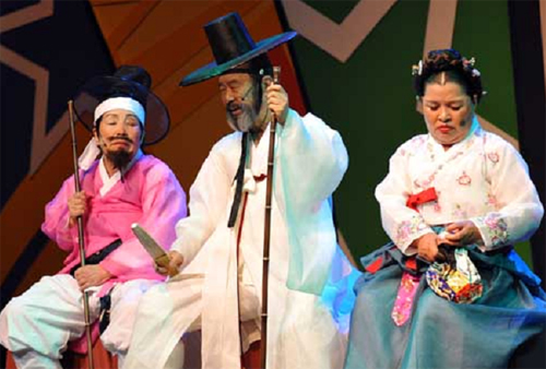 ![]() 황봉사, 심봉사, 뺑파가 황성맹인잔치에 가는 장면