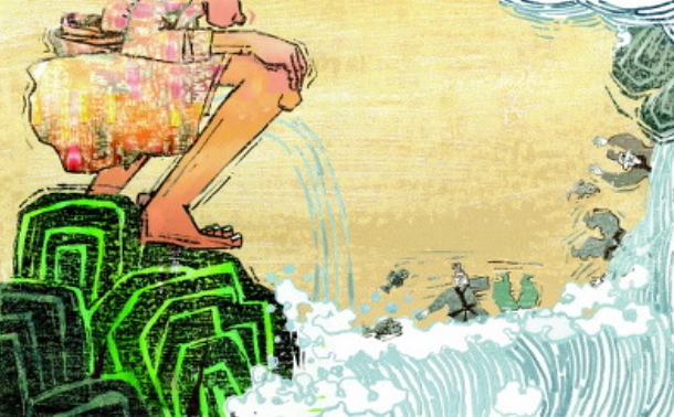 ![]() 설문대할망의 오줌으로 홍수가 되는 그림
