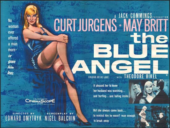 미국에서 제작한 영화 <푸른 천사>에서의 롤라롤라는 원형인물 로자 프뢸리히에 대한 재해석 및 변용을 크게 시도하지 않는다. 다만 유성영화이며 컬러영화의 이점을 이용해 시각적 색채효과를 통해 매체변용을 시도한다. 특히 롤라롤라와 술집 ‘푸른 천사’의 이미지를 푸른 색 기조로 창출해 내고 있다. 이는 롤라의 분장과 의상에서 두드러지게 나타난다. 특히 롤라가 다른 남성과 키스하는 것을 목격한 운라트가 그녀의 목을 조르려다가 포기하고 그녀를 떠나가는 시퀀스에서 그녀의 푸른색 드레스는 그들의 사랑의 슬픈 결말을 상징한다. 이 영화의 롤라롤라는 독일판 <푸른 천사>에서 롤라역 마를레네 디트리히의 성공을 염두에 두고 그녀를 모방하고자 하였으며, 따라서 영화자체는 주인공 운라트보다 롤라를 부각시키는데에 더 중점을 둔다. 그러나 메이 브릿의 연기는 너무 뻣뻣하고 의상은 그저 브로드웨이의 뮤지컬 발레단원의 모습 같다고 평가된다. 브릿의 롤라는 디트리히가 연기한 탁월한 퍼포먼스와 비교되어 많은 비판을 받는다.