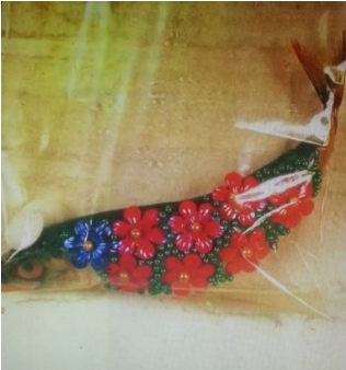 꽃으로 치장하고 비닐봉지에 담긴 도미