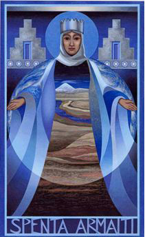 아르마이티는 조로아스터교의 종교적인 경건함과 헌신을 대표하는 천사이며 대지를 수호하는 여신이다. 아르마이티는 조로아스터교의 전지전능한 최고신인 아후라 마즈다의 현현이자 직위가 높은 여섯 천사들을 부르는 아메샤 스펜타(Amesha Spentas, 죽지 않는 신성한 존재) 중 한 명으로, 아후라 마즈다를 위해 봉사하며 신성함을 뜻하는 말 ‘스펜타’를 붙어 스펜타 아르마이티로 불린다. 아메샤 스펜타는 천사들의 우두머리이며, 아후라 마즈다가 세상을 창조할 때 인간 세계를 결정짓고 다스리는 데 큰 역할을 한다. 그 중 아르마이티는 대지와 자연의 상징이며 대지 그 자체로도 불리기도 한다. 대지를 수호하는 여신이자 풍요의 여신인 아르마이티는 땅에 묻힌 죽은 자들과도 관련이 있다. 아르마이티의 임무는 인간들을 풍요의 삶과 구원으로 인도하며 모든 생물을 보살피는 것이다. 조로아스터교의 신자가 성공적인 경작을 거둘 때 아르마이티는 기뻐하지만, 자연과 대지를 모독하고 더럽힌 인간에게는 엄벌을 내린다. 그 예가 큰 죄로 여겨진 시체를 땅에 매장하는 것이다. 또한 그녀는 순결하며 가족과 남편 그리고 아이들에게 헌신하는 미덕을 상징한다. 후대로 오면서 헌신적이고 대지를 수호하는 풍요의 여신 아르마이티는 조로아스터교의 이상적인 여성상으로 불리며 숭상받는다. 이러한 그녀와 대립되는 조로아스터교의 인물로 불만족의 악마인 난가이티야(Nanghaithya)가 있다. 아르메니아 신화에서 아르마이티는 산다라메(Sandaramet) 라고 불리기도 한다. 조로아스터력에 따르면 그녀는 12번째 달과 다섯 번째 날과 연관이 있으며 12월 5일은 아르마이티의 성일로 꼽힌다.